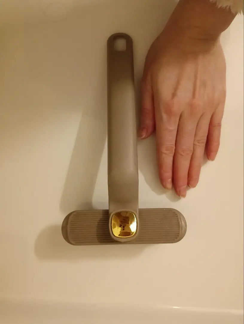 E a nossa escova de limpeza 3-em-1 inclui um gancho integrado que permite remover facilmente cabelos que entopem os ralos — sem sujar as mãos!